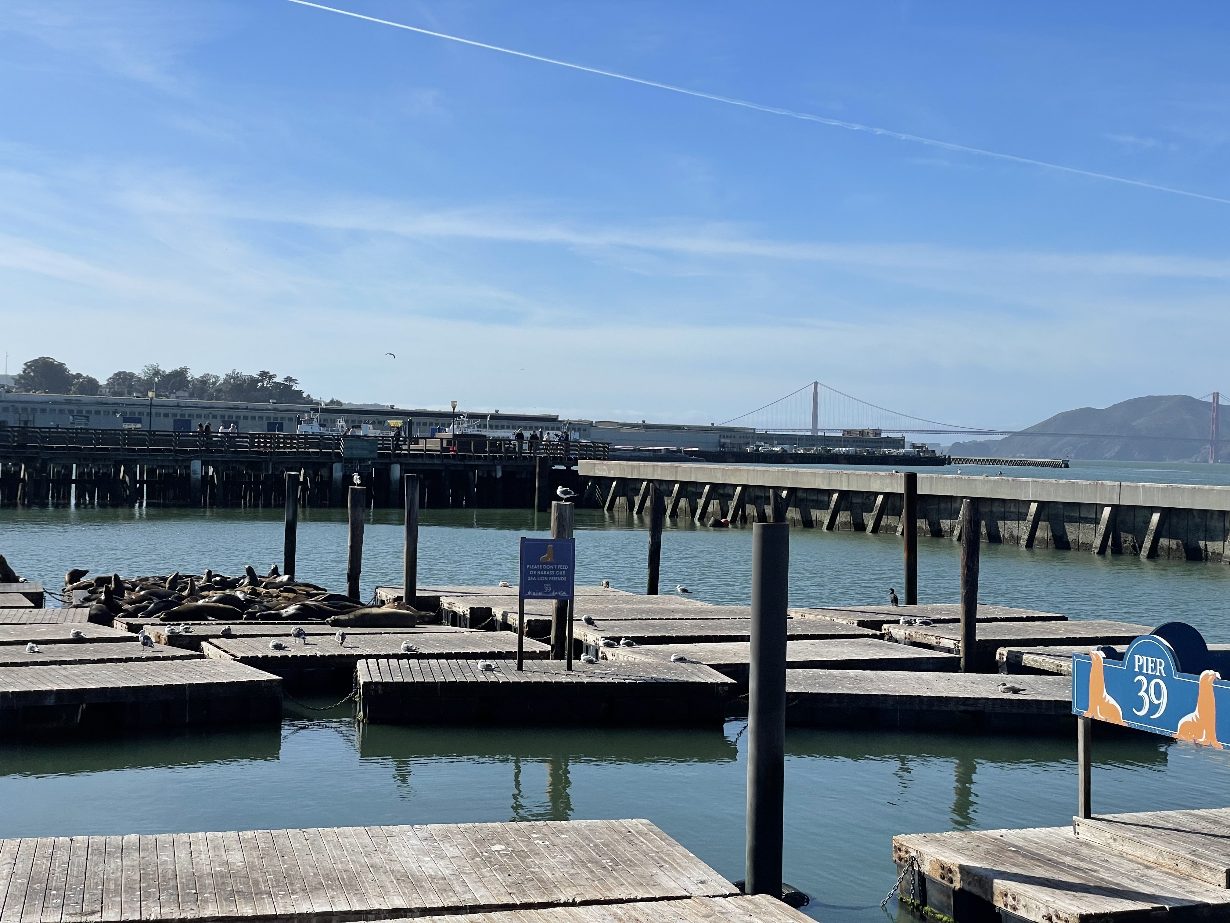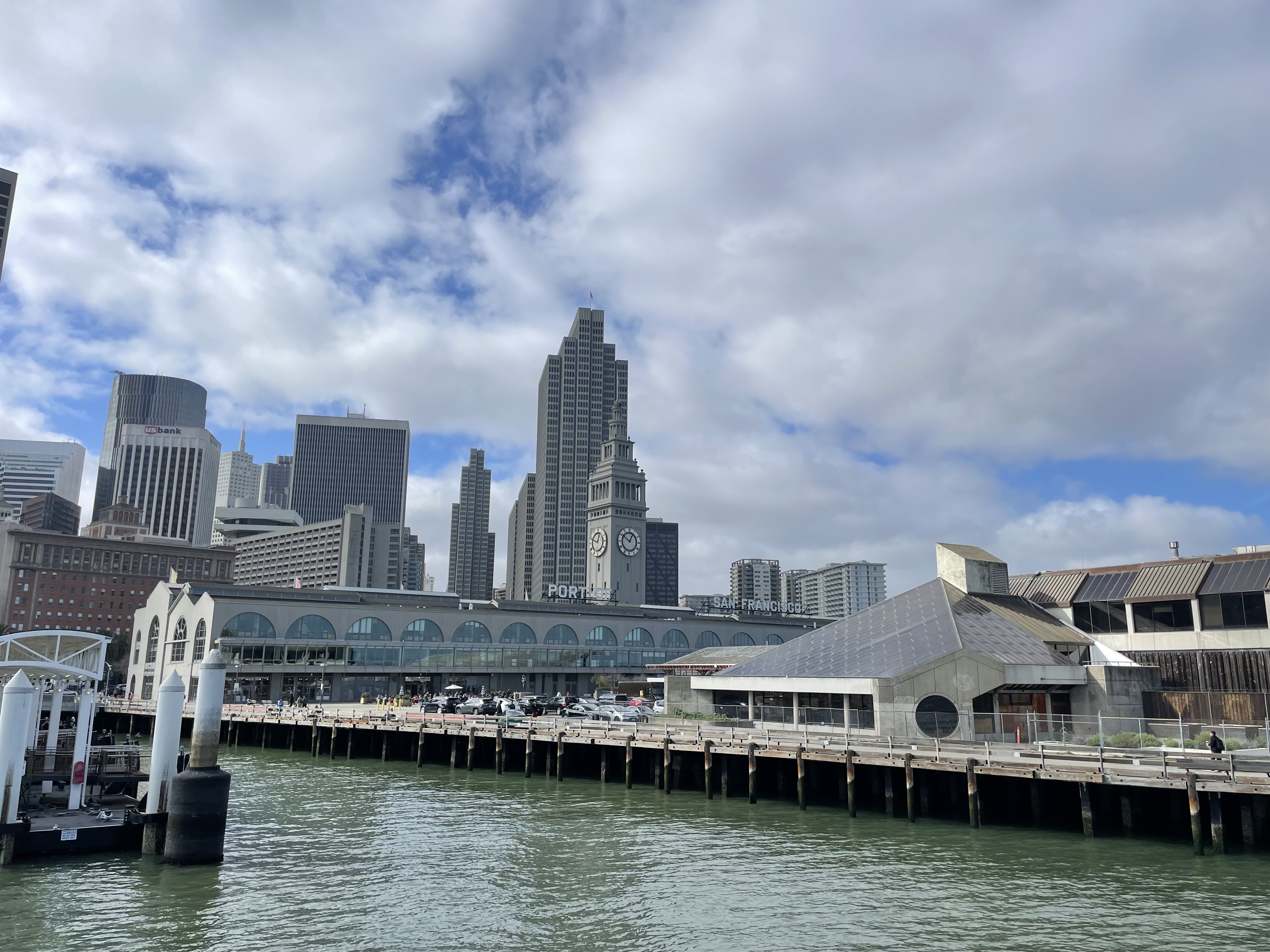Rather than get an Uber all the way, six of us got an Uber to Richmond (45 minutes) and then a ferry to San Francisco (30 minutes). Unfortunately we just missed one and had to wait over an hour for the next one, but we had a potter round the harbour area and saw some birds, including brown pelicans.