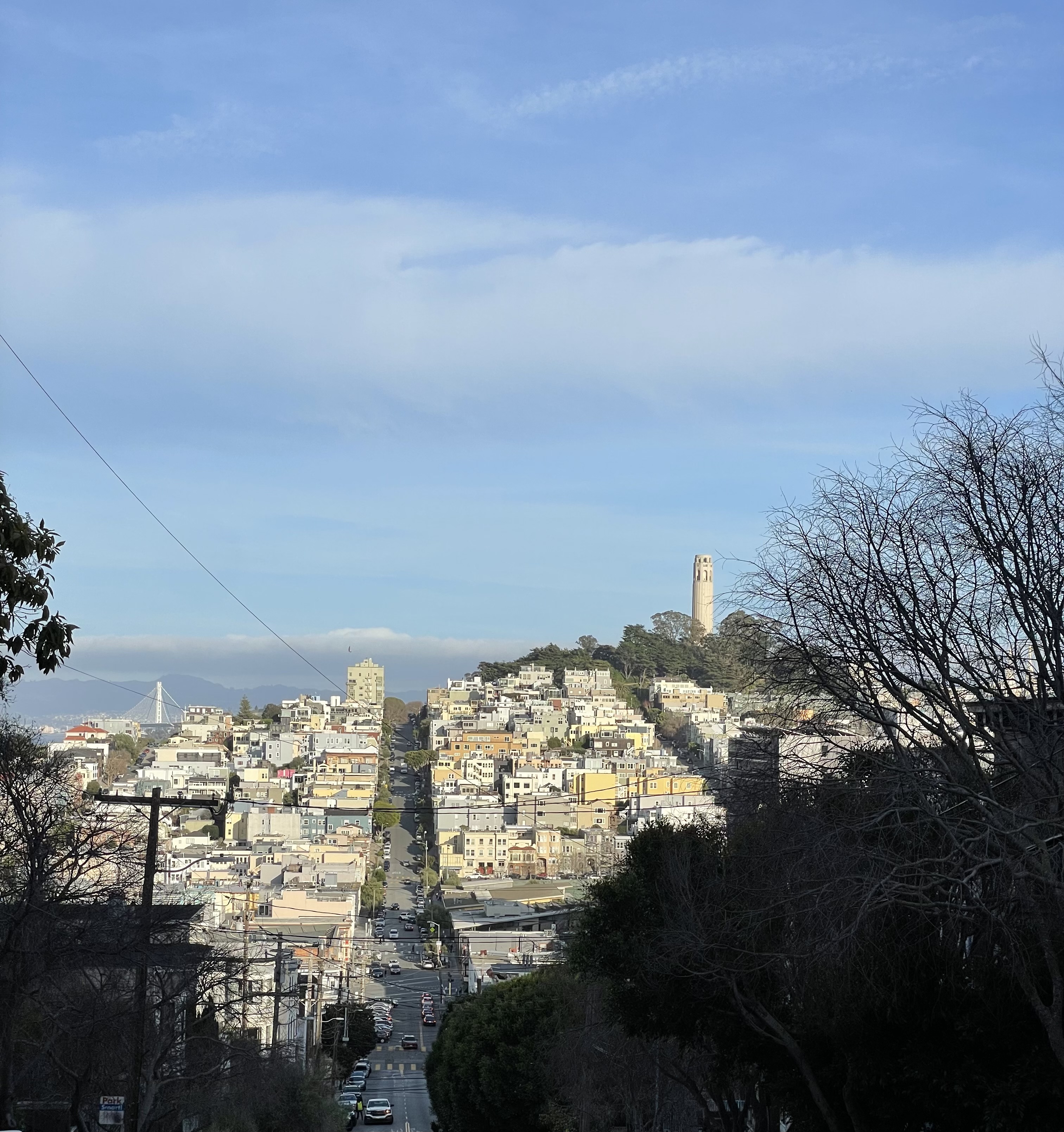 Next we rode a street car up one of the steep hills then walked down the famous zig-zag Lombard Street. There is some great modern architecture along with older traditional buildings. We saw several driverless cars too – rather unsettling!