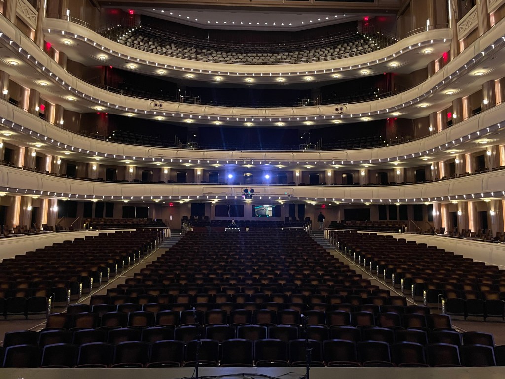The buses parked up at about 6am and some people got up and went out to explore the Strip, an Uber ride away. A few of us walked round to the front of our building, The Smith Center, which is beautiful, art deco in style.