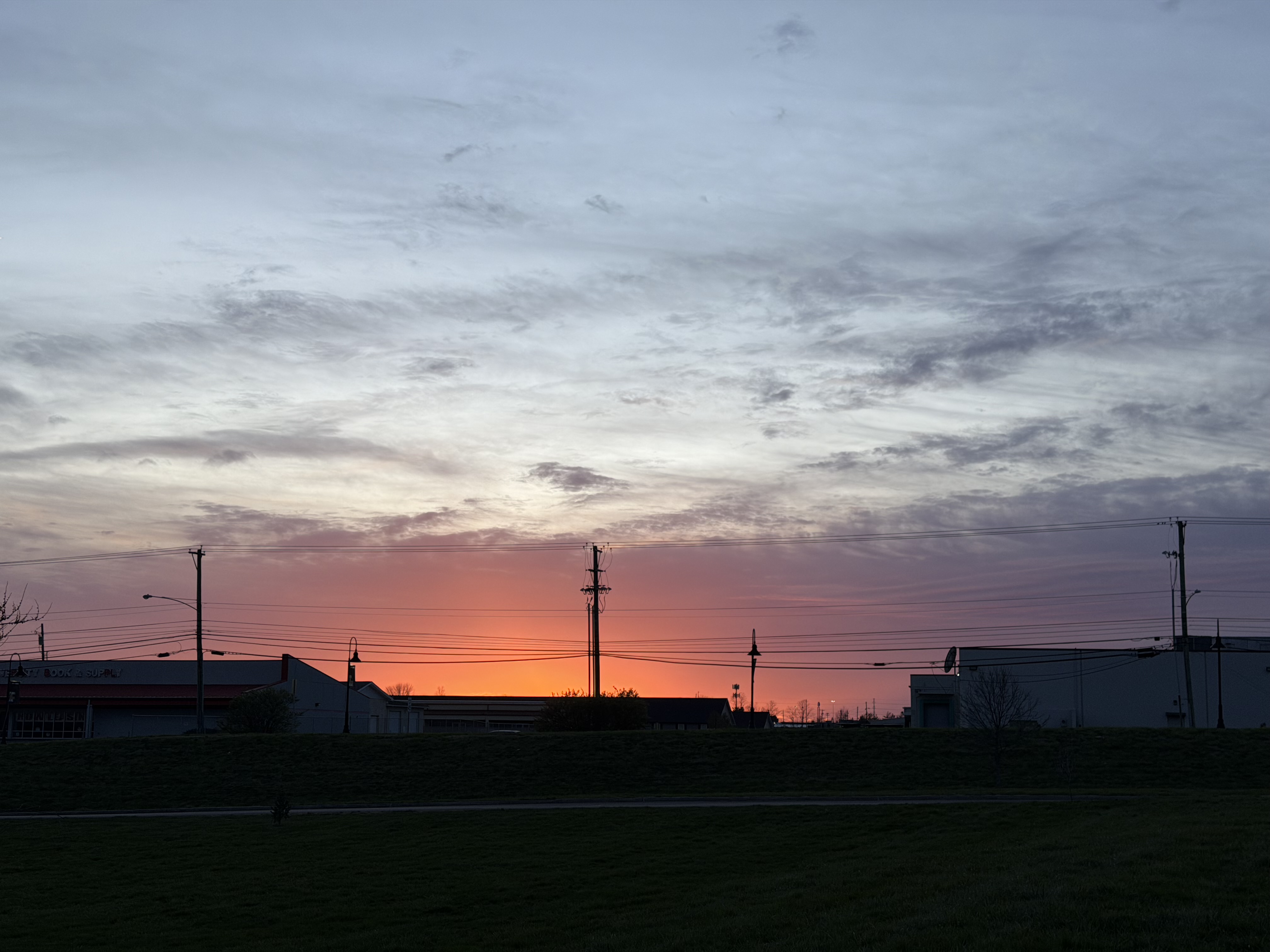 There are lots of blossom trees everywhere we go, in varying stages of flowering which is lovely. After the show they had the finale of “Traitors” which we all watched. Rob arranged the theme tune for us all to play at the beginning which went down well. Evie (our presenter) was “Claudia Winkelwoman” and did her make-up and hair to match! We had an order of KFC delivered to the buses afterwards! Well, we had to, didn’t we as we were in Kentucky! There was an intense sunset too.