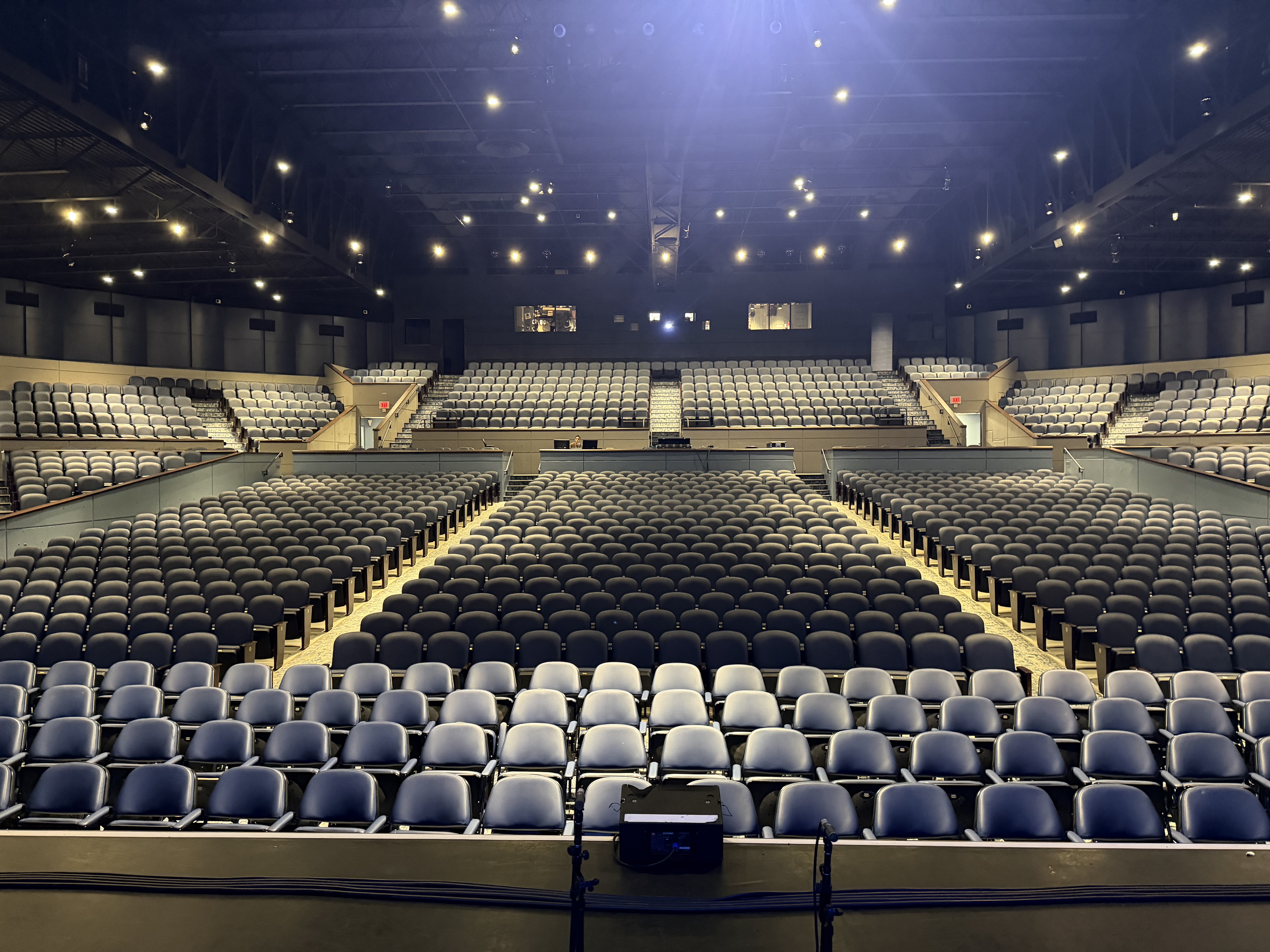 One show at 2.00 at the Tilles Center, Long Island University. A wealthy area and these are beautiful grounds. We are sold out today too and it is quite a large auditorium but as it was another relaxed performance it was quite noisy. The house lights are left up for these and I think it encourages chatter.