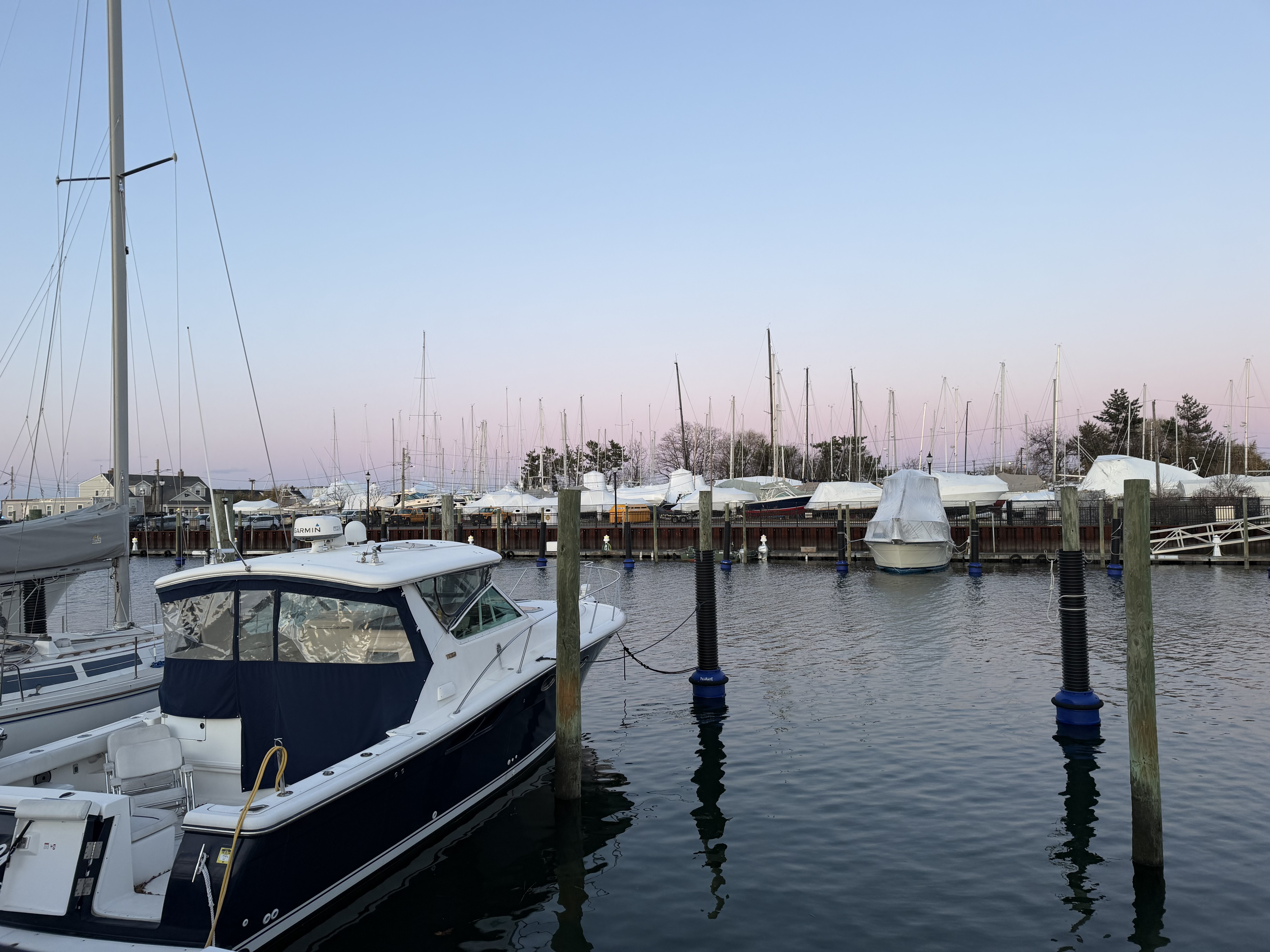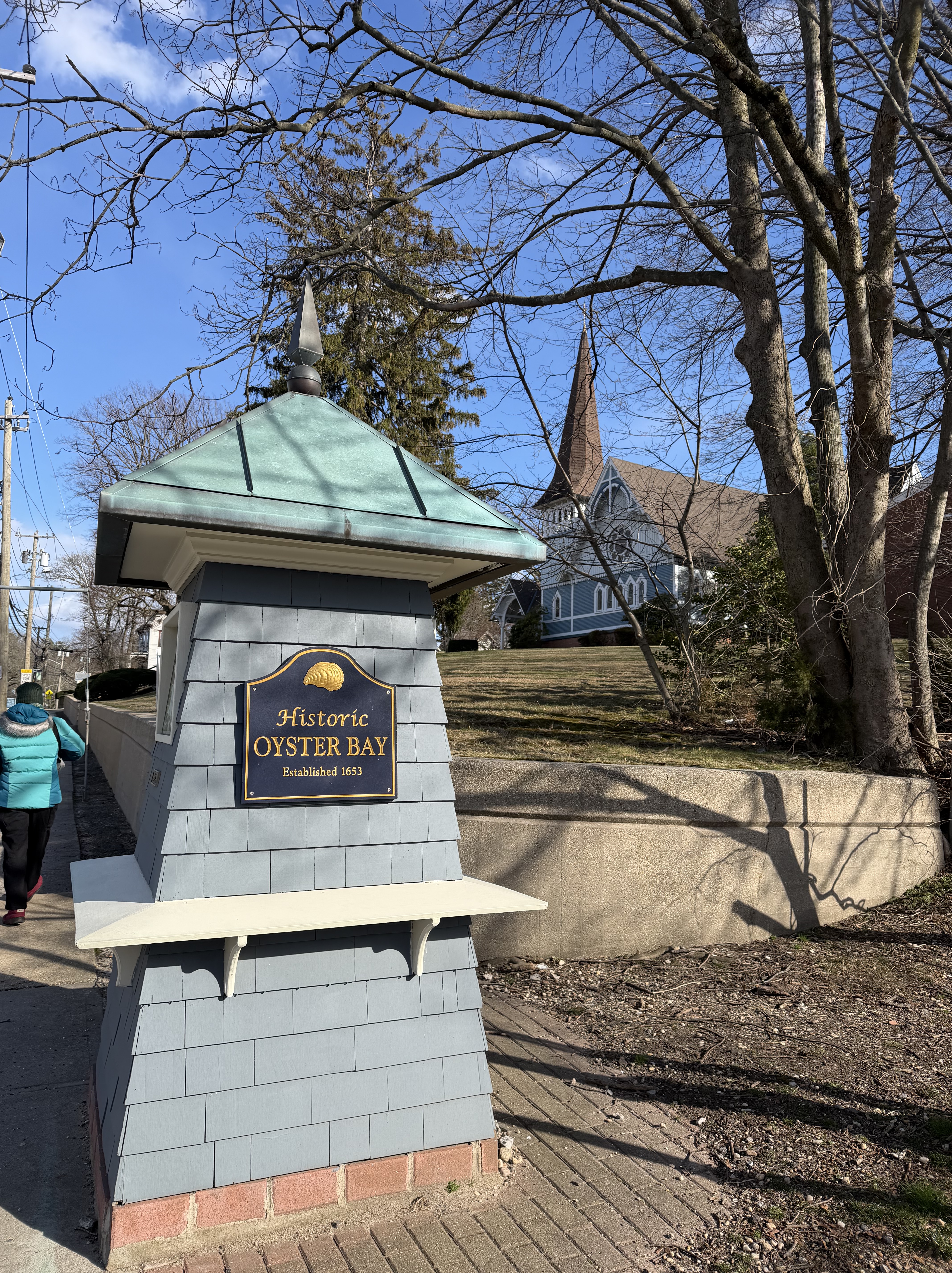 It was a sunny but cold day, around freezing, so six of us took an Uber to the coast at Oyster Bay. A quaint hamlet on an inlet with a marina, but it was quite deserted as it is out of season. All the yachts were shrink wrapped! We had a walk round and then found an Italian restaurant.