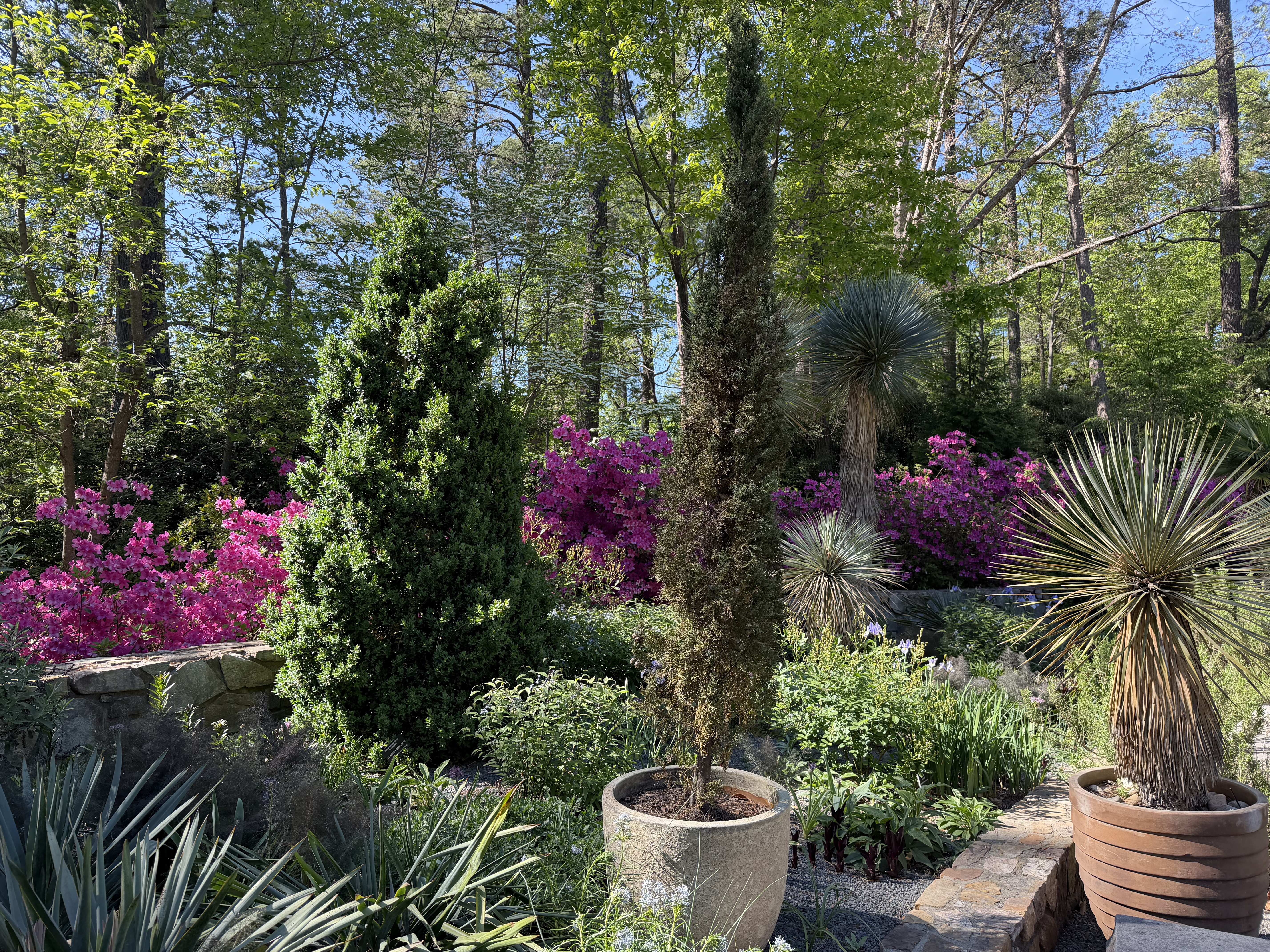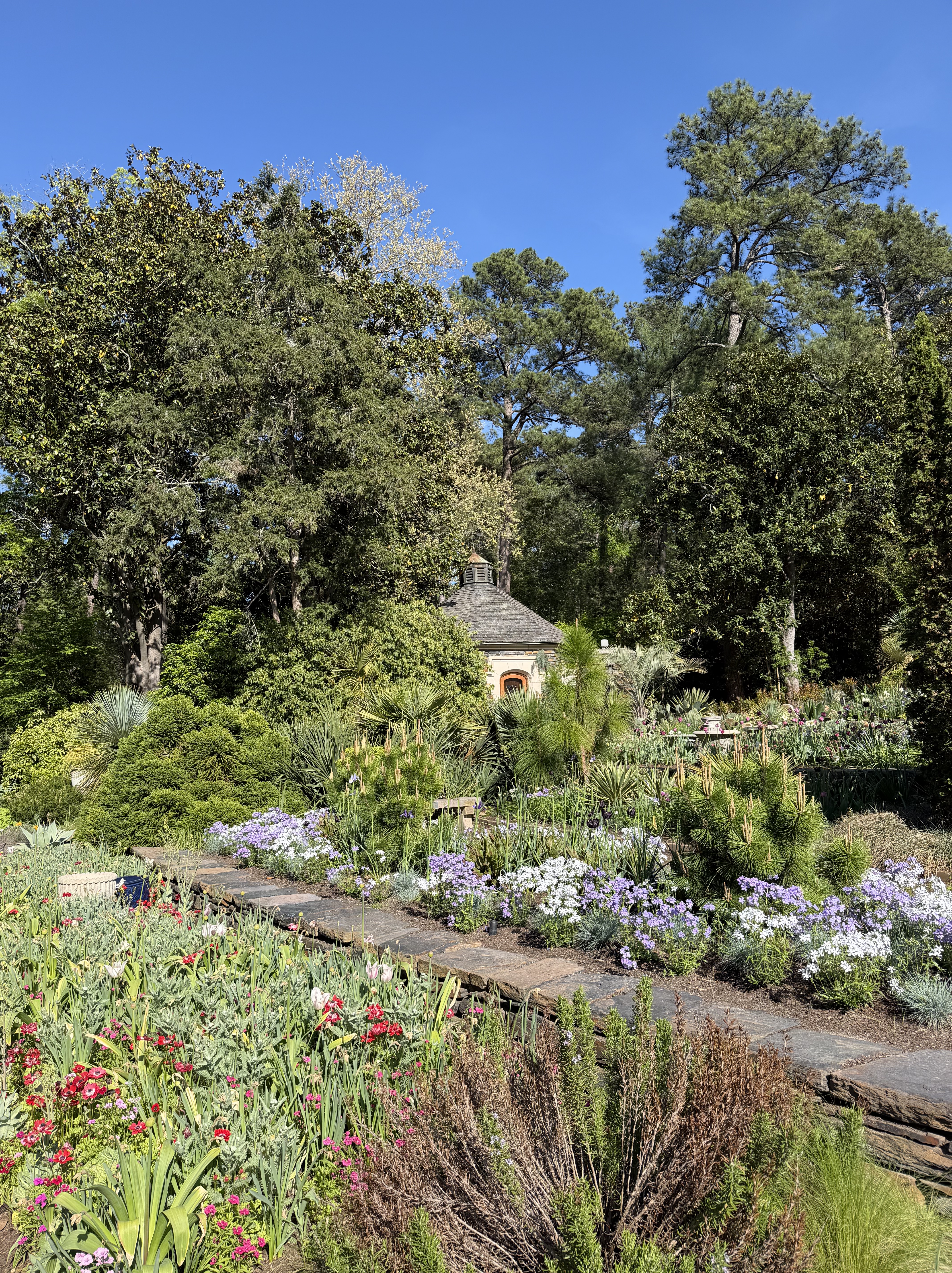 Then, on to the Sarah P Duke gardens. James Duke founded Duke University with his tobacco fortune (Durham is tobacco country) and Sarah was his daughter. The gardens are fabulous and are divided into four sections, including a Japanese garden. Lots of birds as well!