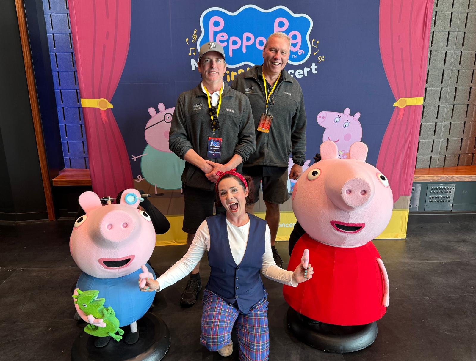 Early get-up (for us anyway!) as the buses left at 8.00 for the ten minute drive to the theatre. A nice sunny day today so we had a short walk in the grounds. Plenty of time as we didn’t have the usual soundcheck and set up. We had a 10.00 show for schools and it was the best ever!!! They had been gathering and waiting for quite a while and they started clapping along to the Peppa Pig music which was being piped in, then chanting “Peppa Pig”. It gave us all quite a frisson in the wings! There was a huge cheer when the pigs came on stage. It continued like that throughout the show and they were also so well-behaved and quiet during the dialogue. A perfect audience!
