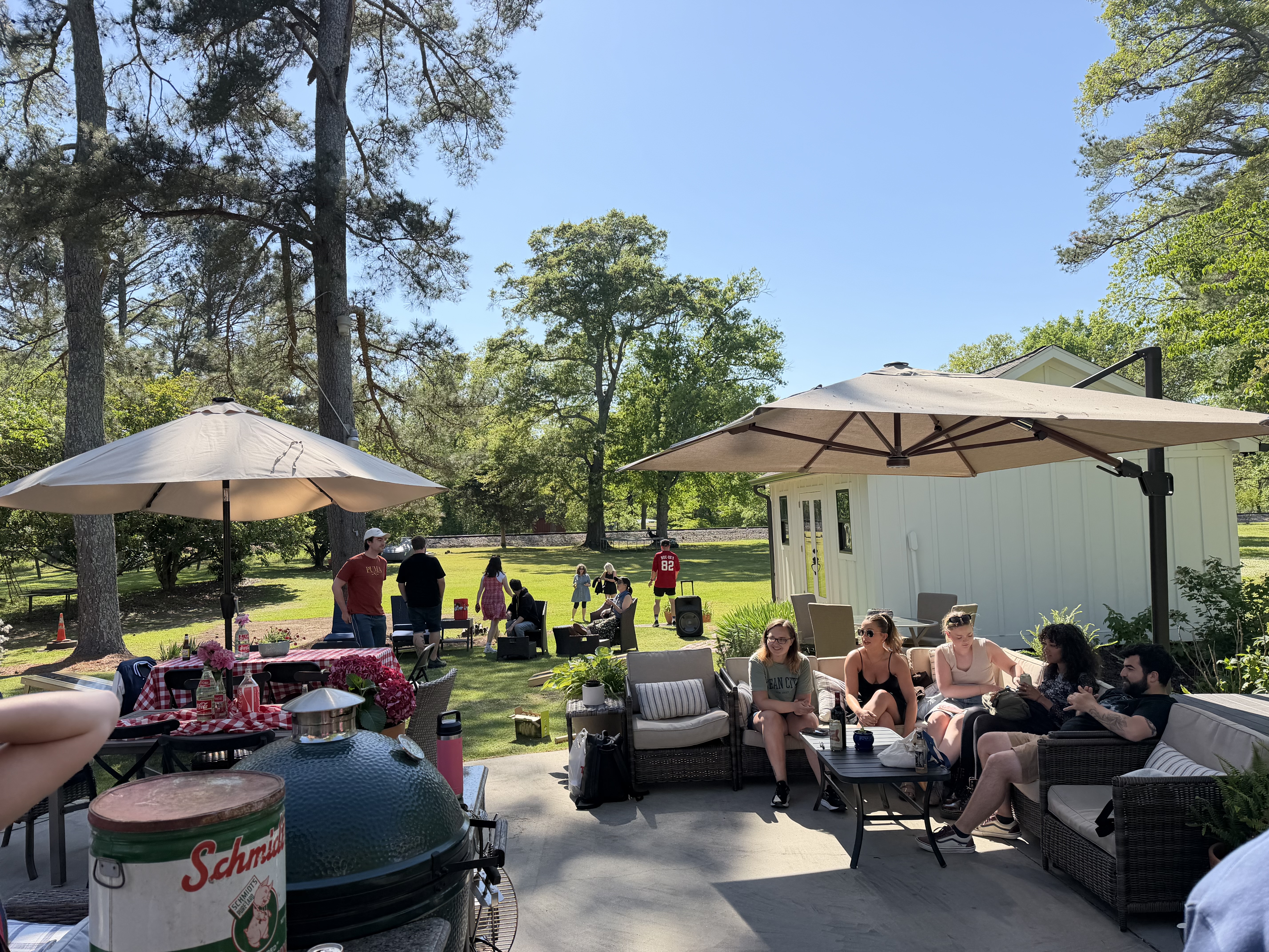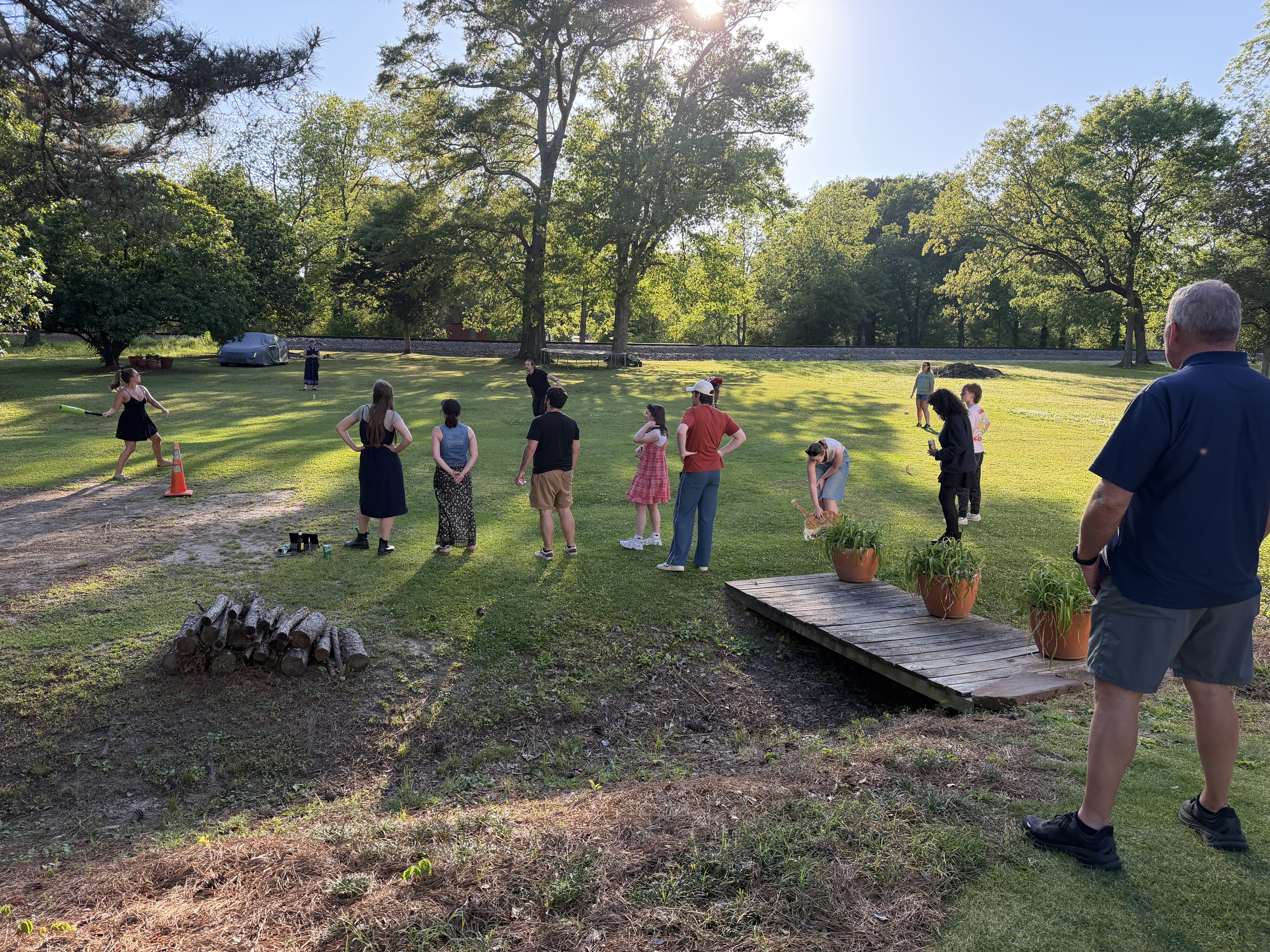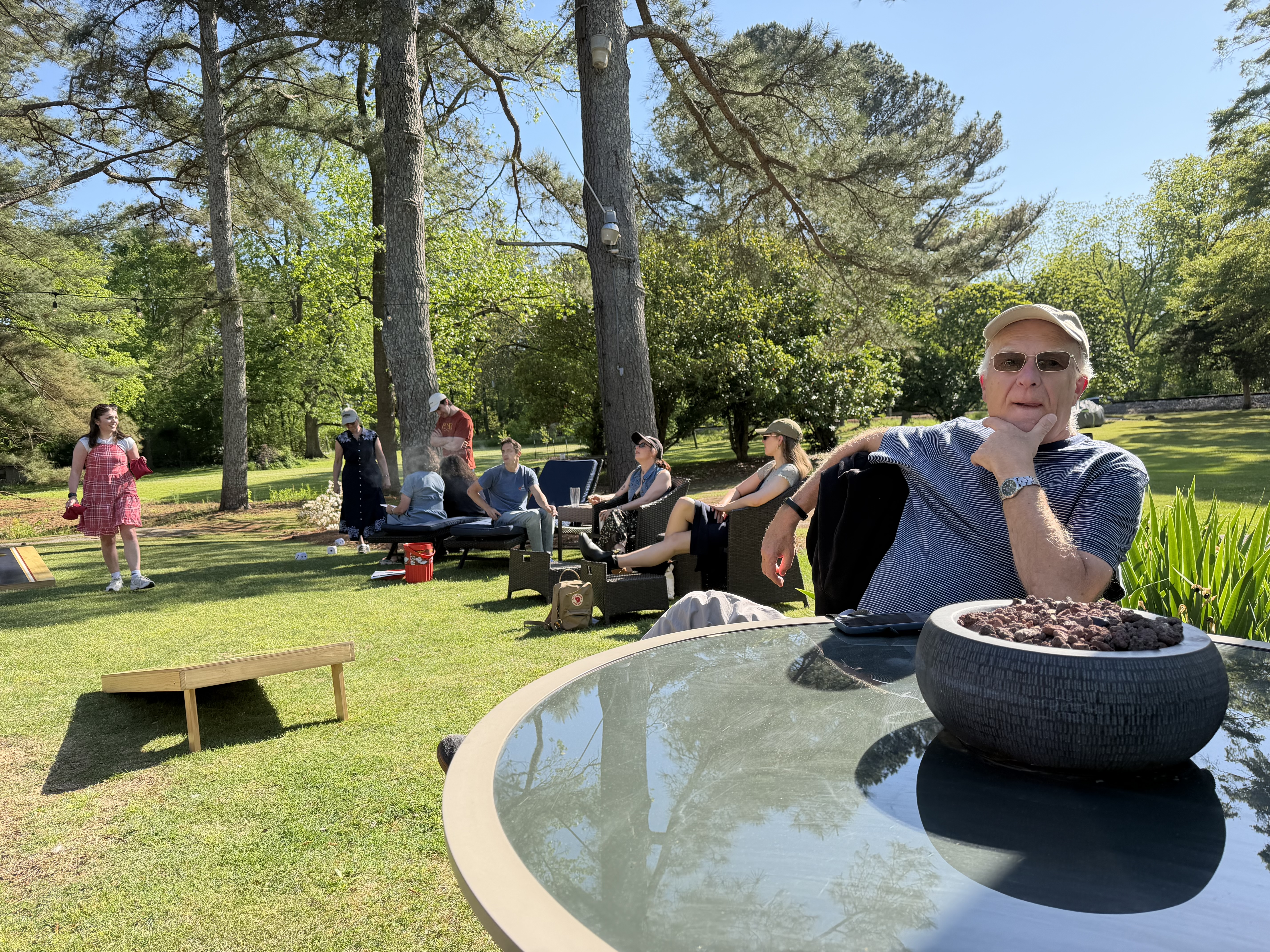 Buses left at 12.00 mid-day to Boaz where Jackson’s (our tour manager) parents live. It was a scenic drive, nice to see in daylight. All the trees are in full leaf now and it is very lush round here. We got there mid-afternoon. They have a lovely house with open grounds at the back. Tables and chairs were all set up and outdoor games out. They did a BBQ for us which was fabulous.