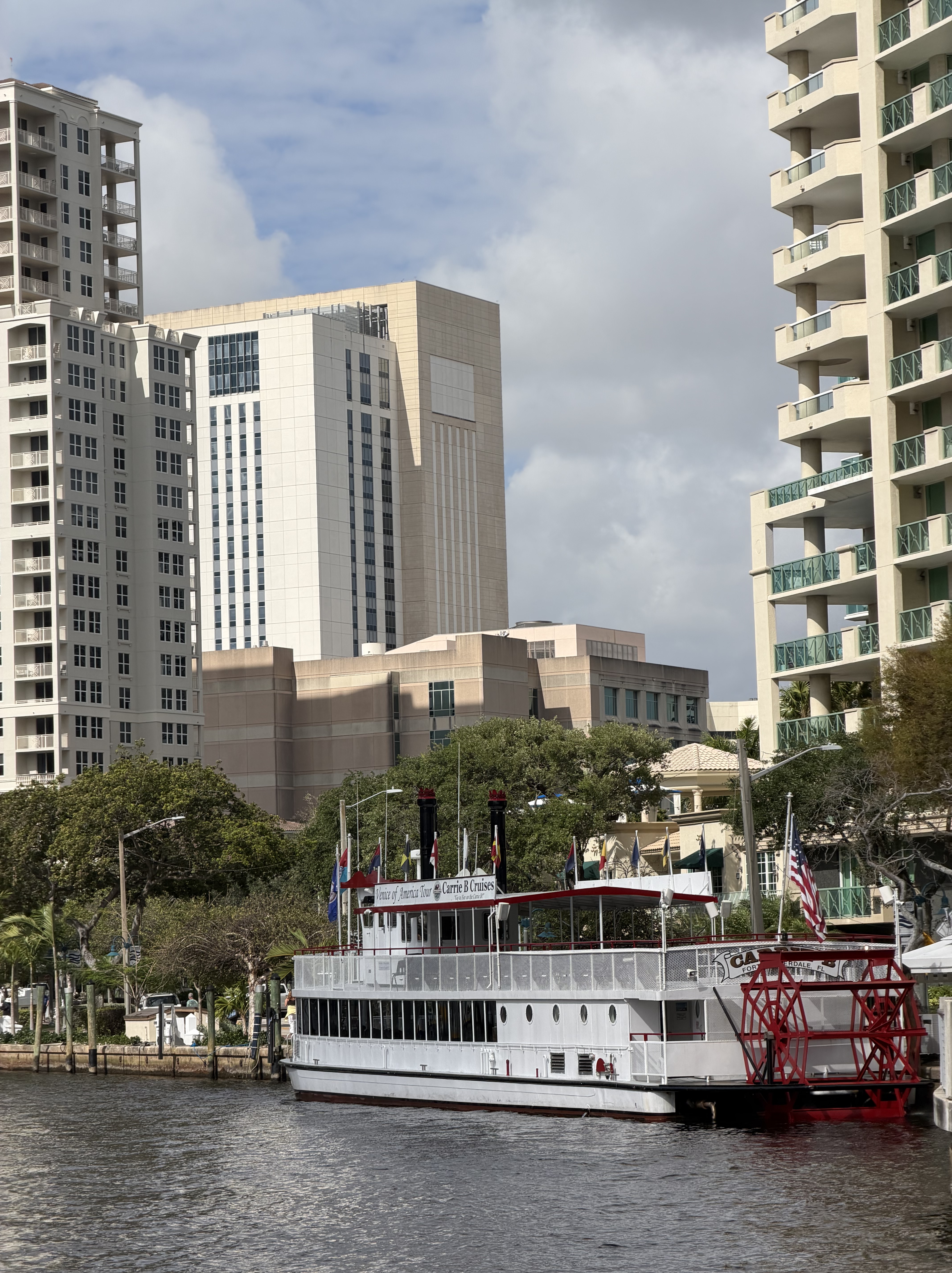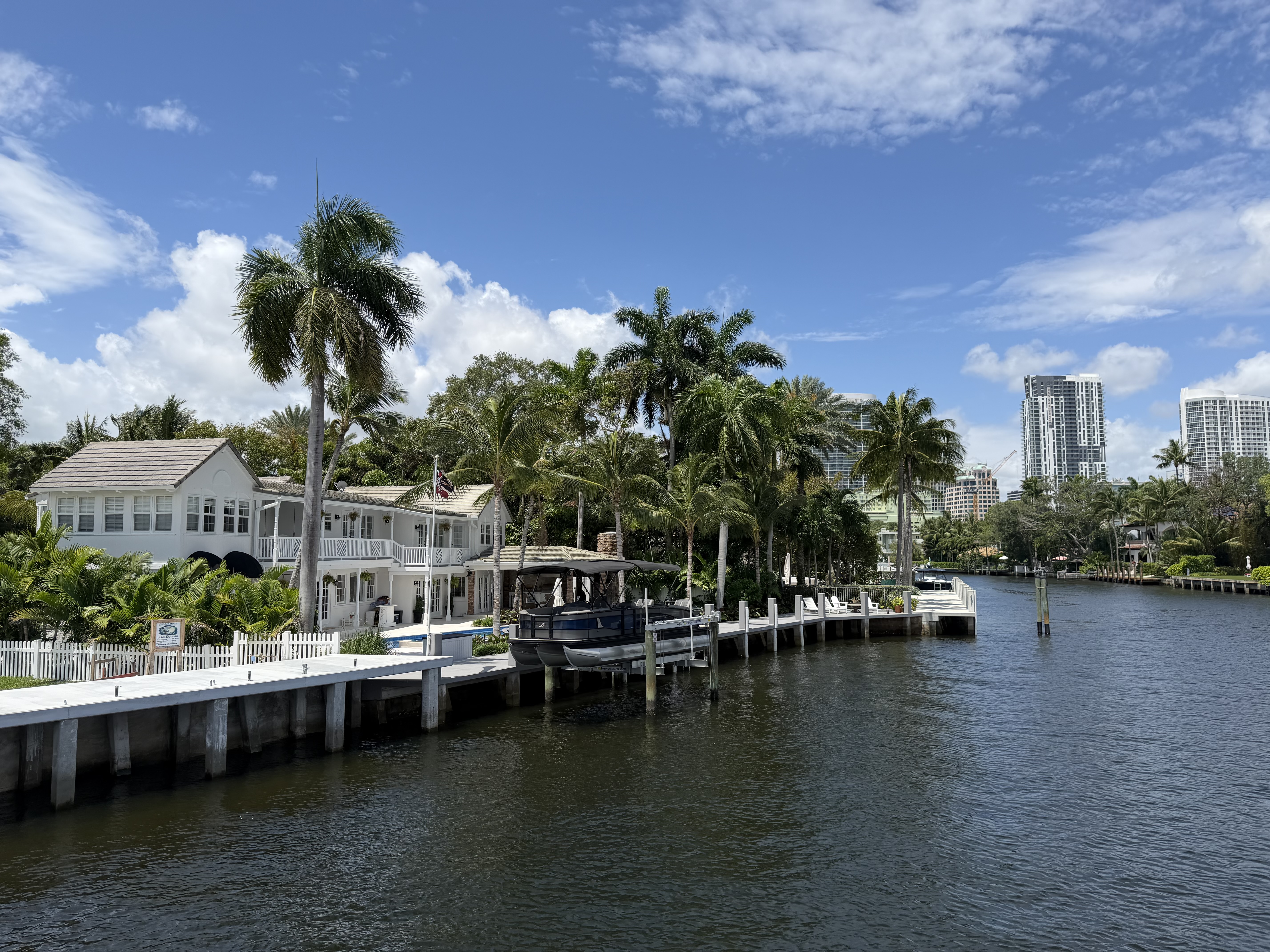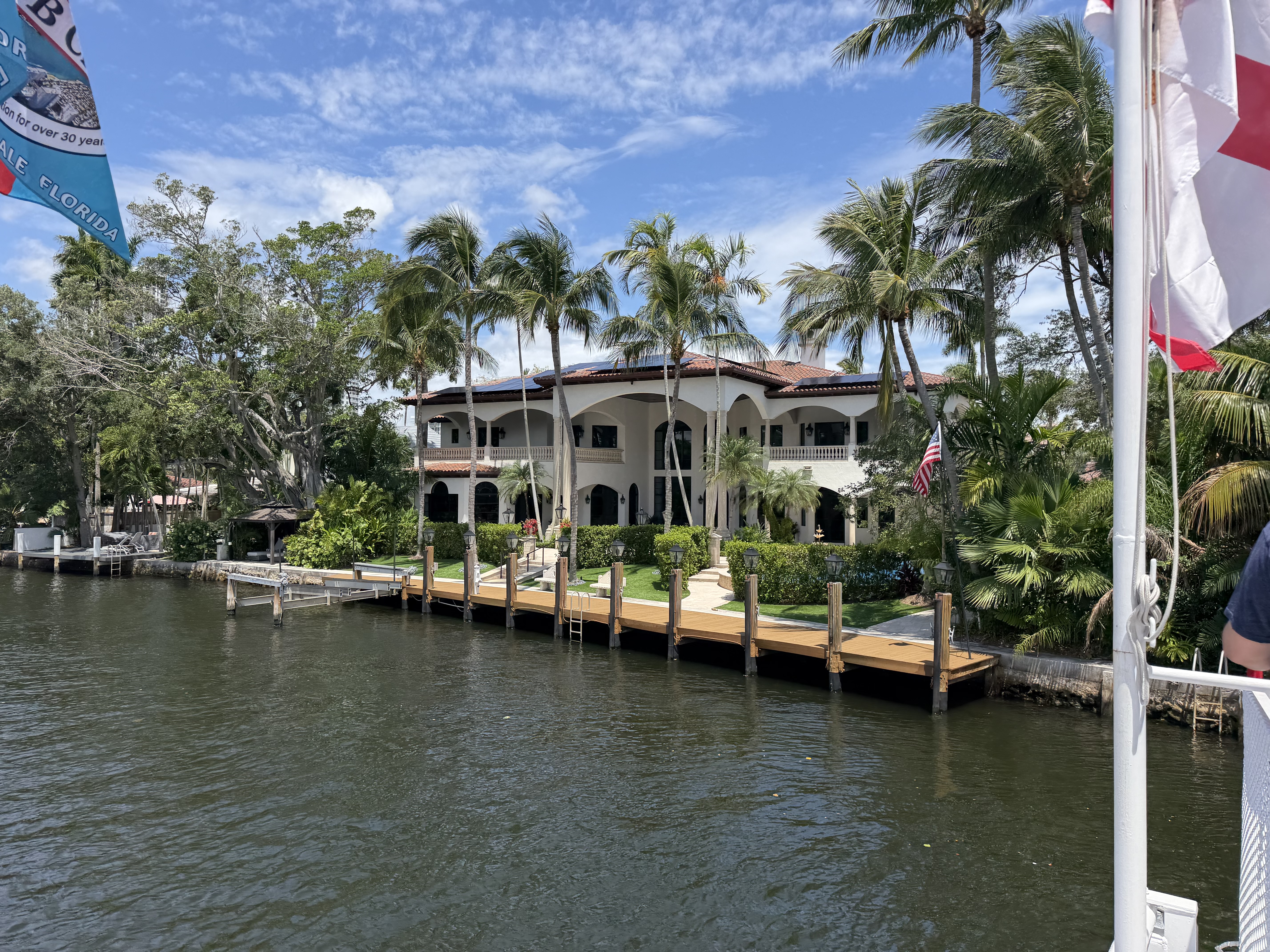 Fort Lauderdale was very glamorous, more than I had remembered. It is known as the Venice of America and in the morning we did a boat trip. There are lots of waterways and the commentary describes all the fabulous houses on the banks and the millionaires who own them. We didn’t recognise many names but they are the owners of companies like Wendy’s, KFC, Pizza Hut, a cardboard box company and various actors. One family owns a huge proportion of the property and was the owner of Blockbuster and all the main sports teams in Florida. It was a great trip and I couldn’t stop taking photos. We went out into “cruise alley” but only two ships were in: a Disney and a Celebrity. We turned round at the mouth of the river and got a glimpse of the beach.