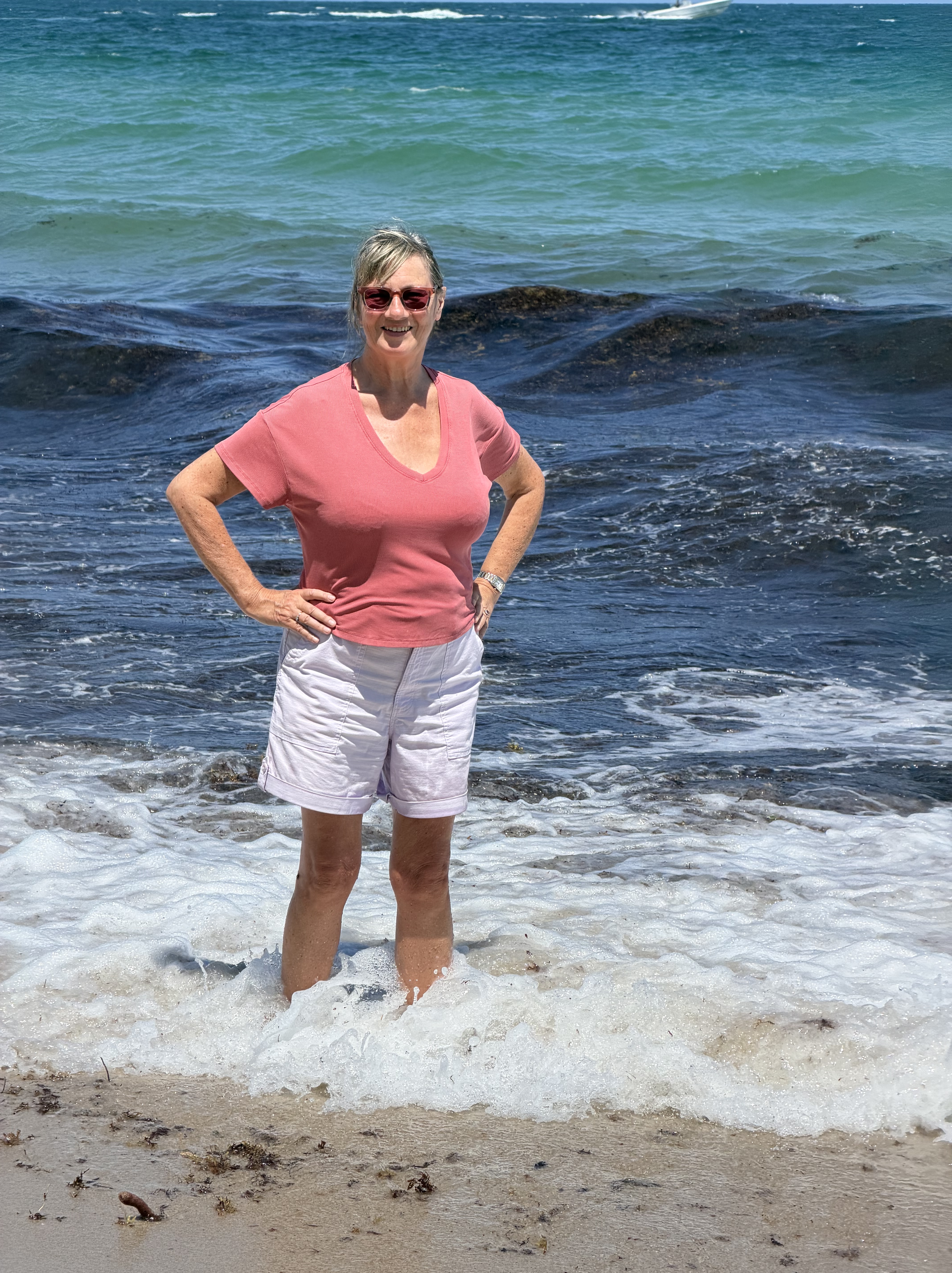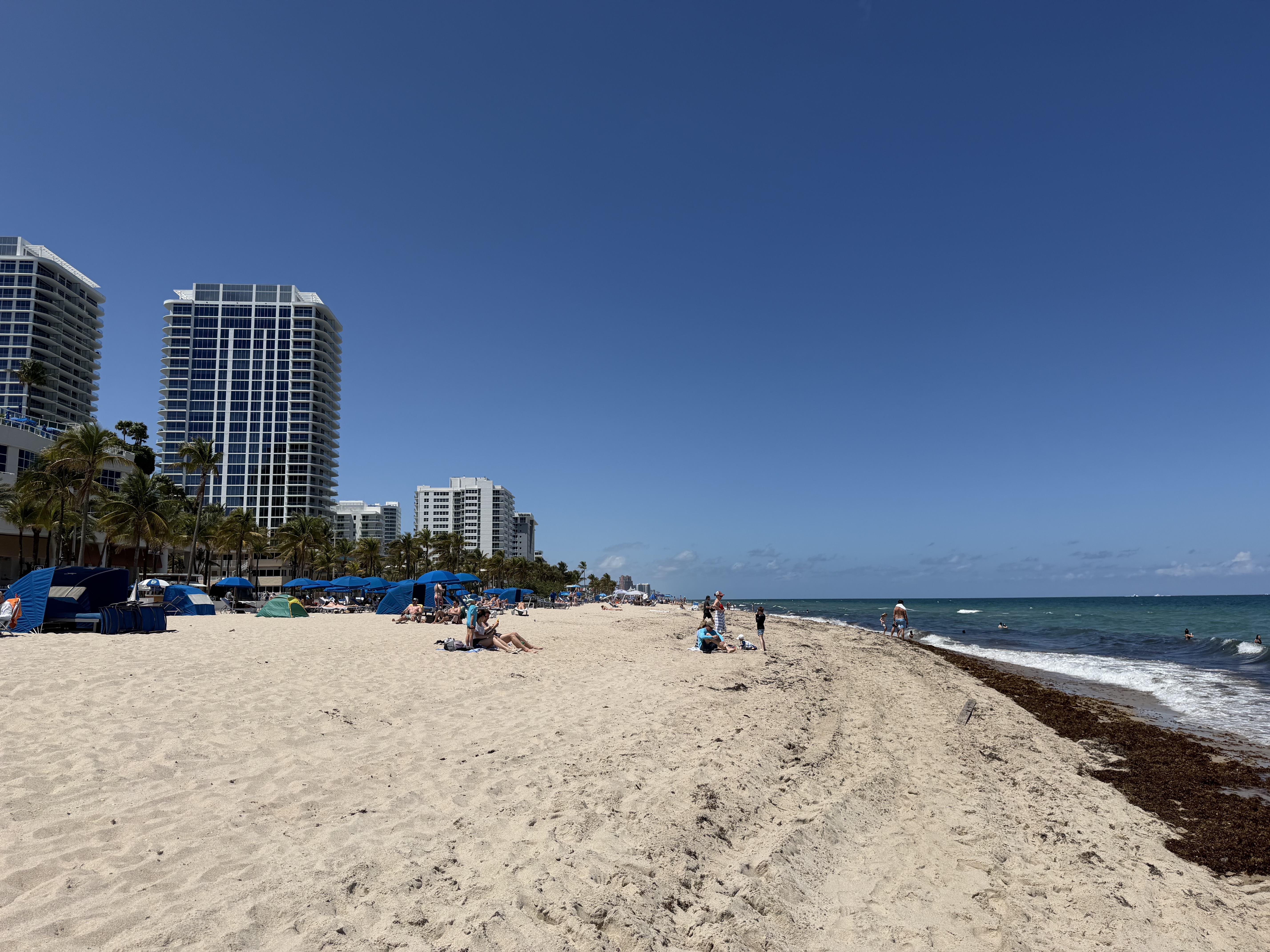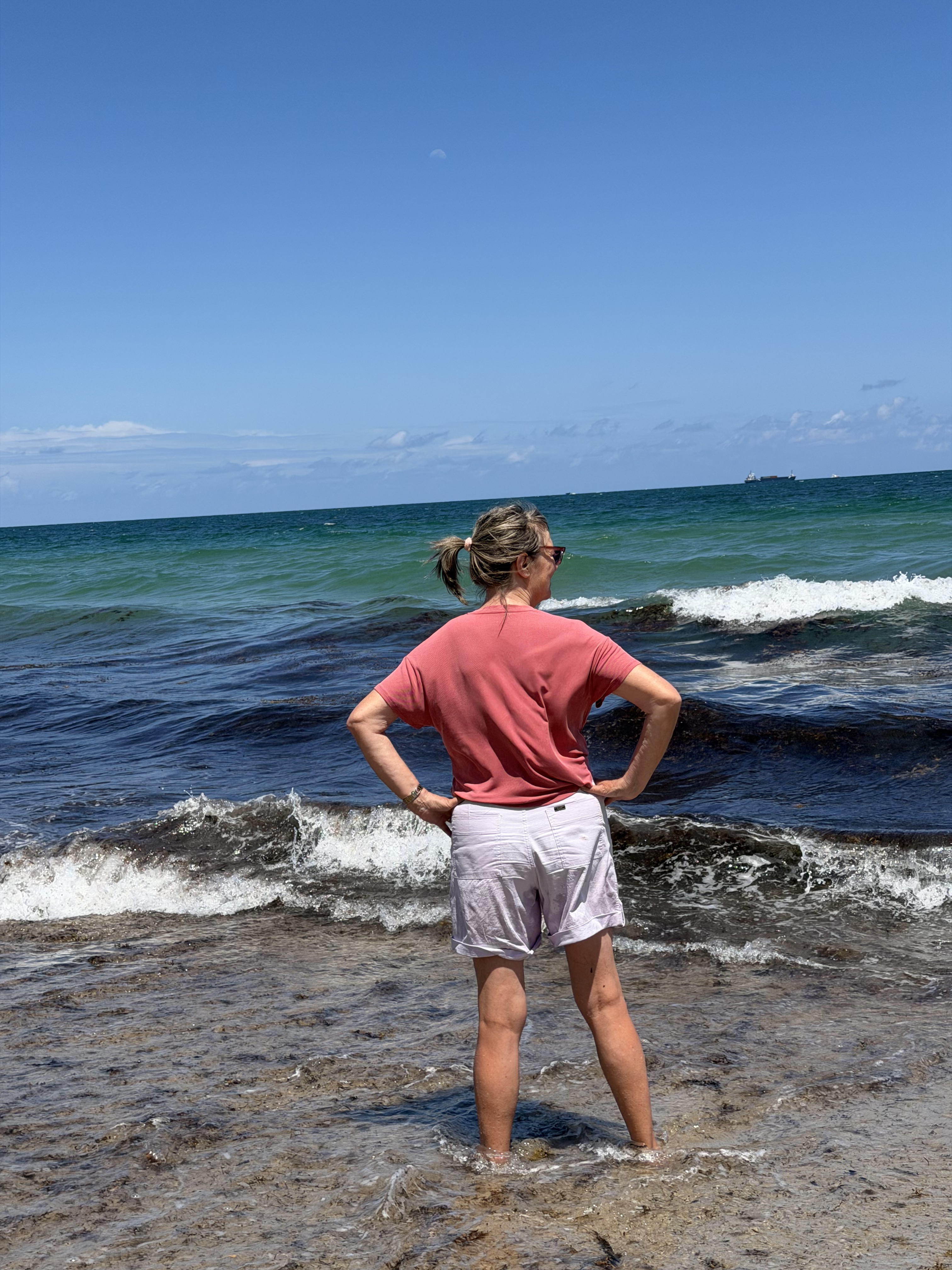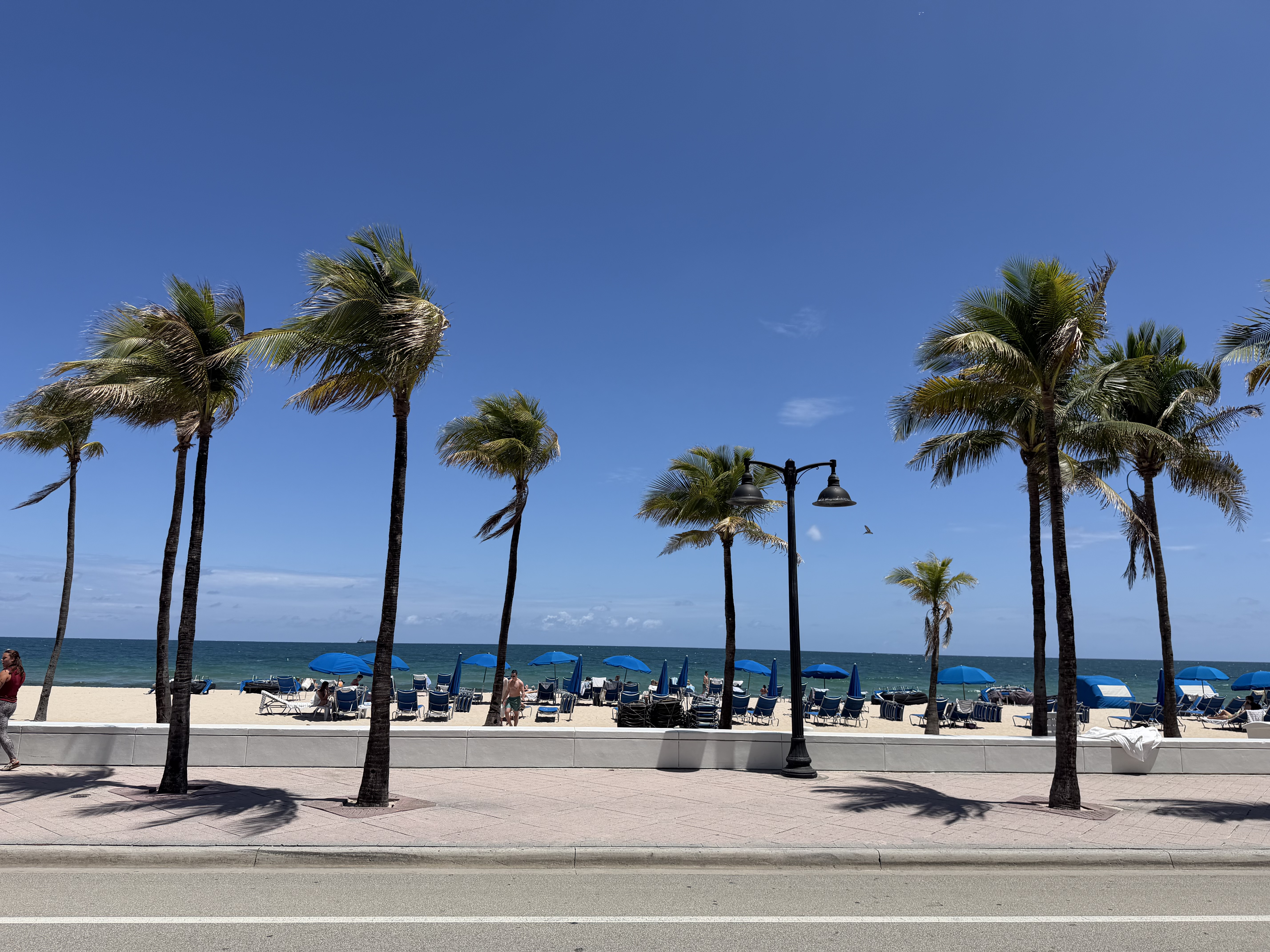 After a coffee, we got an Uber to the beach where most people had gone. It was another hot day! There were palm trees all along the promenade and the sea was warm – I had a paddle! Souvenirs and stickers were bought, naturally.