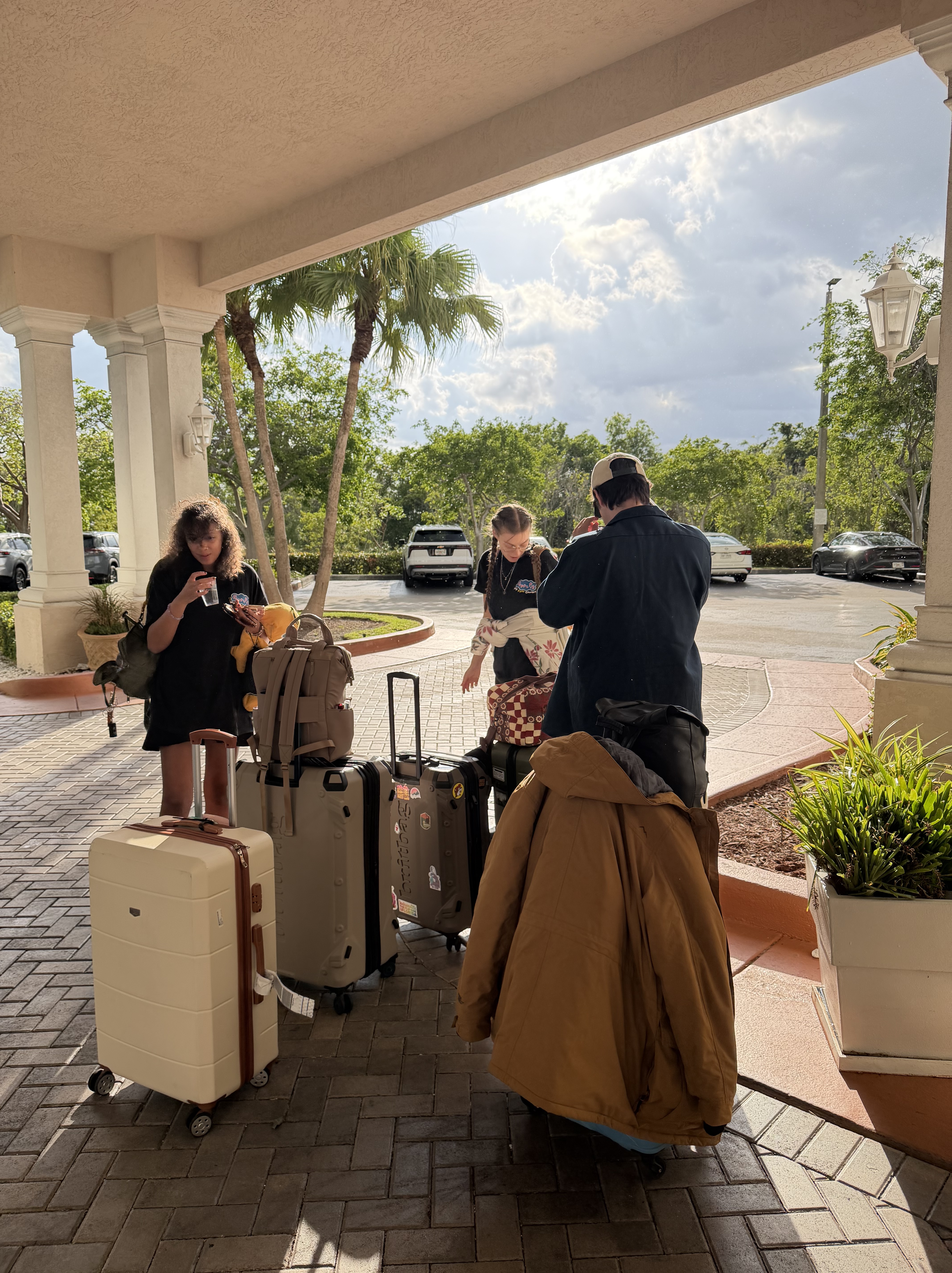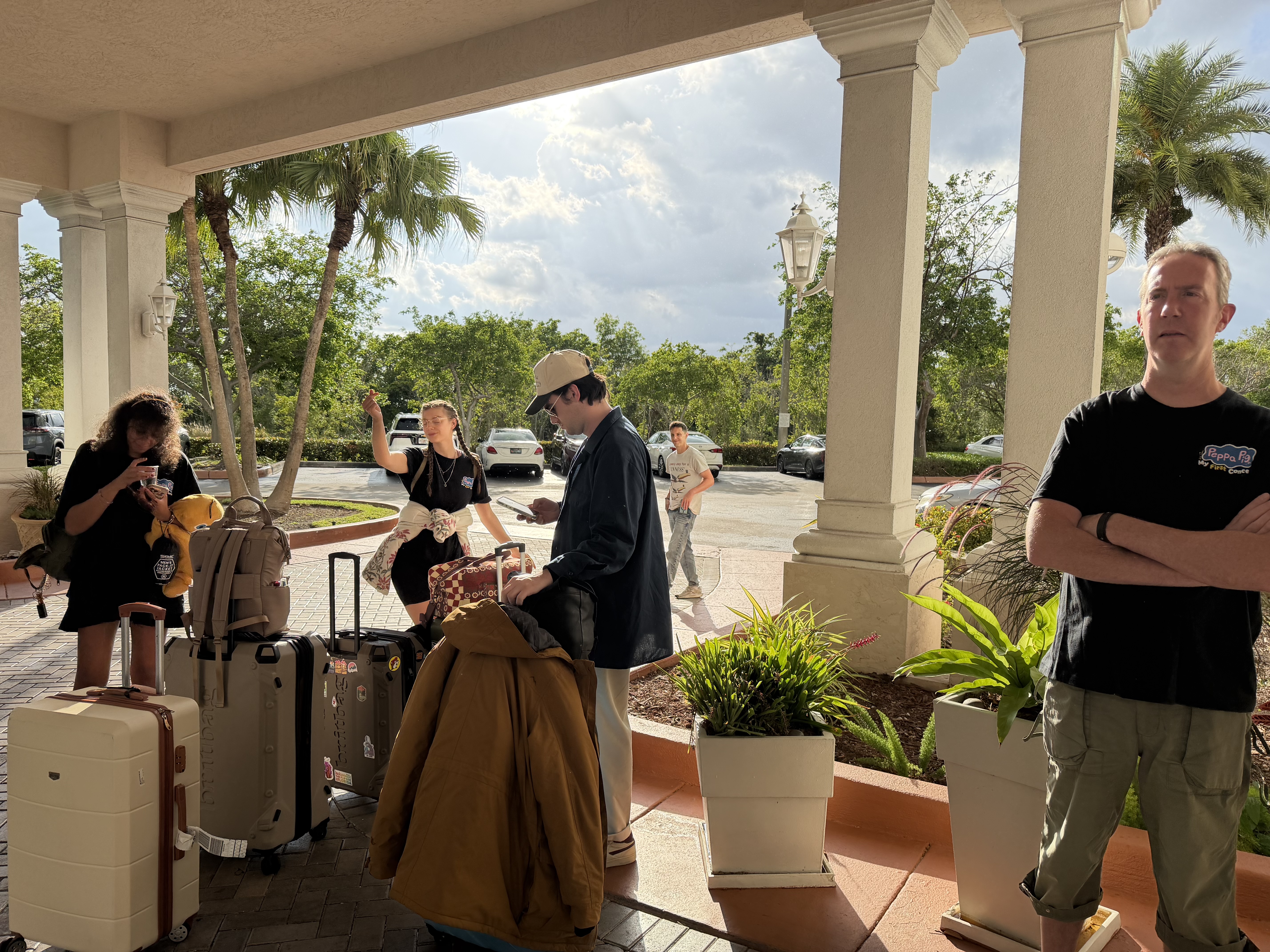 It was a day of staggered farewells too. Lisa, Jackson and Chet left at 4am so we said goodbye last night. Olivia and Tristan, our US players, left earlier in the afternoon for internal flights and Chloe left at about 4.00 to meet her boyfriend the airport for a week in Fort Lauderdale. The rest of us left at 6.00 in Ubers for the airport. There was a hiccup at the gate when they couldn’t find the seat booking for the cello and, as lead for the group flight booking, I had to sort it out with them by showing them the booking details and emails which Jacqui at head office had sent me. It was all fine and a straightforward flight.